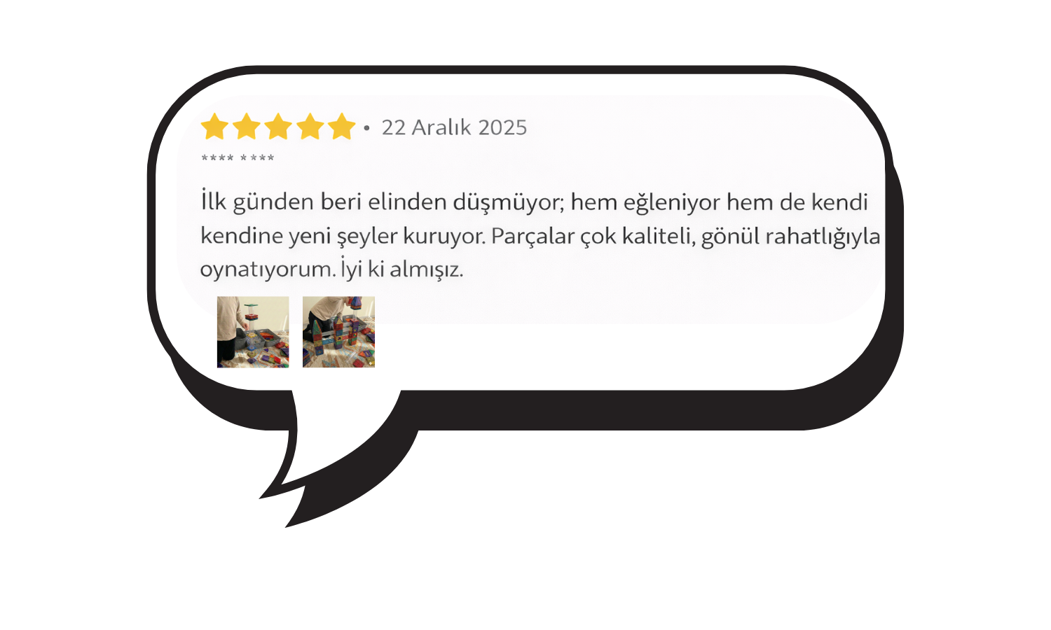 Manuel araba ile çocuklar sadece yapılar inşa etmekle kalmaz; kurdukları yapıyı hareketle birleştirerek oyunlarını canlandırır. Böylece set, sabit bir yapı deneyiminden çıkar ve dinamik bir oyun dünyasına dönüşür.