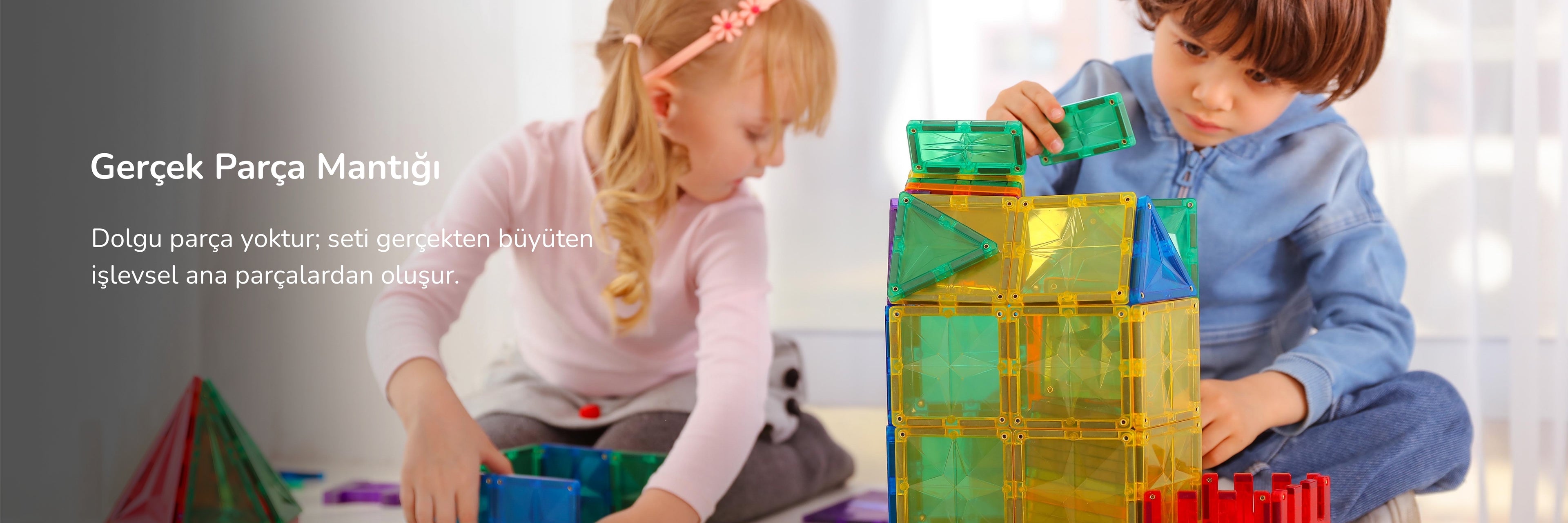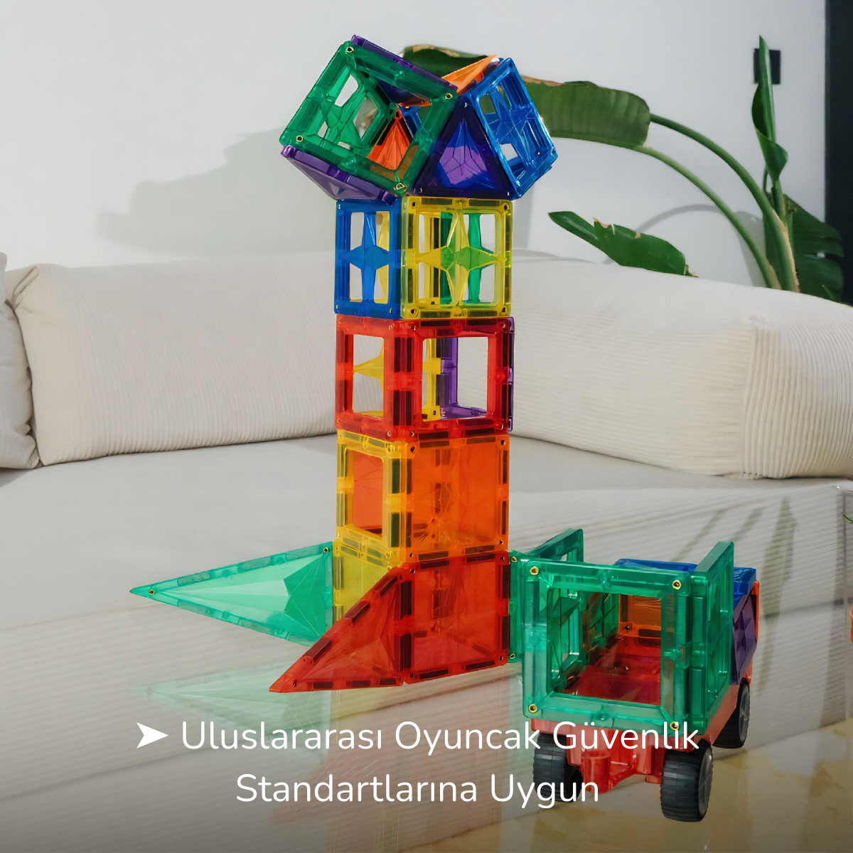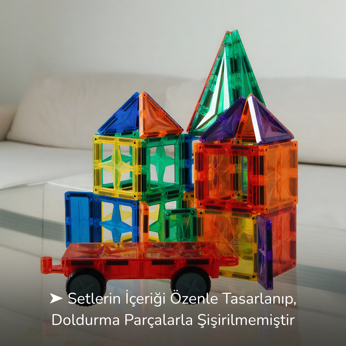 Manyetik yapı dünyasına giriş yapmak isteyenler ve daha az parçalı bir set tercih edenler için ideal bir başlangıçtır. Manuel araba ile birlikte sadece yapı kurmayı değil, kurulan yapıyı harekete dönüştürmeyi de mümkün kılar.