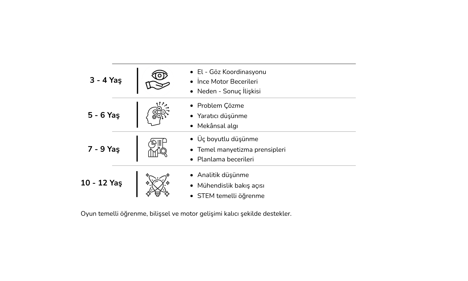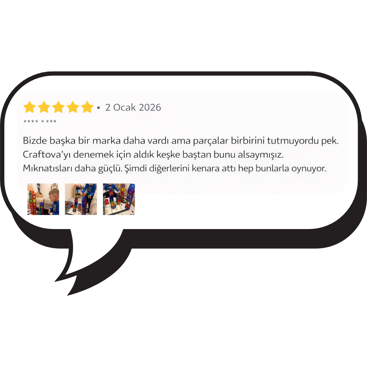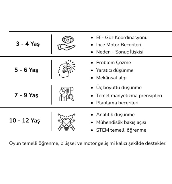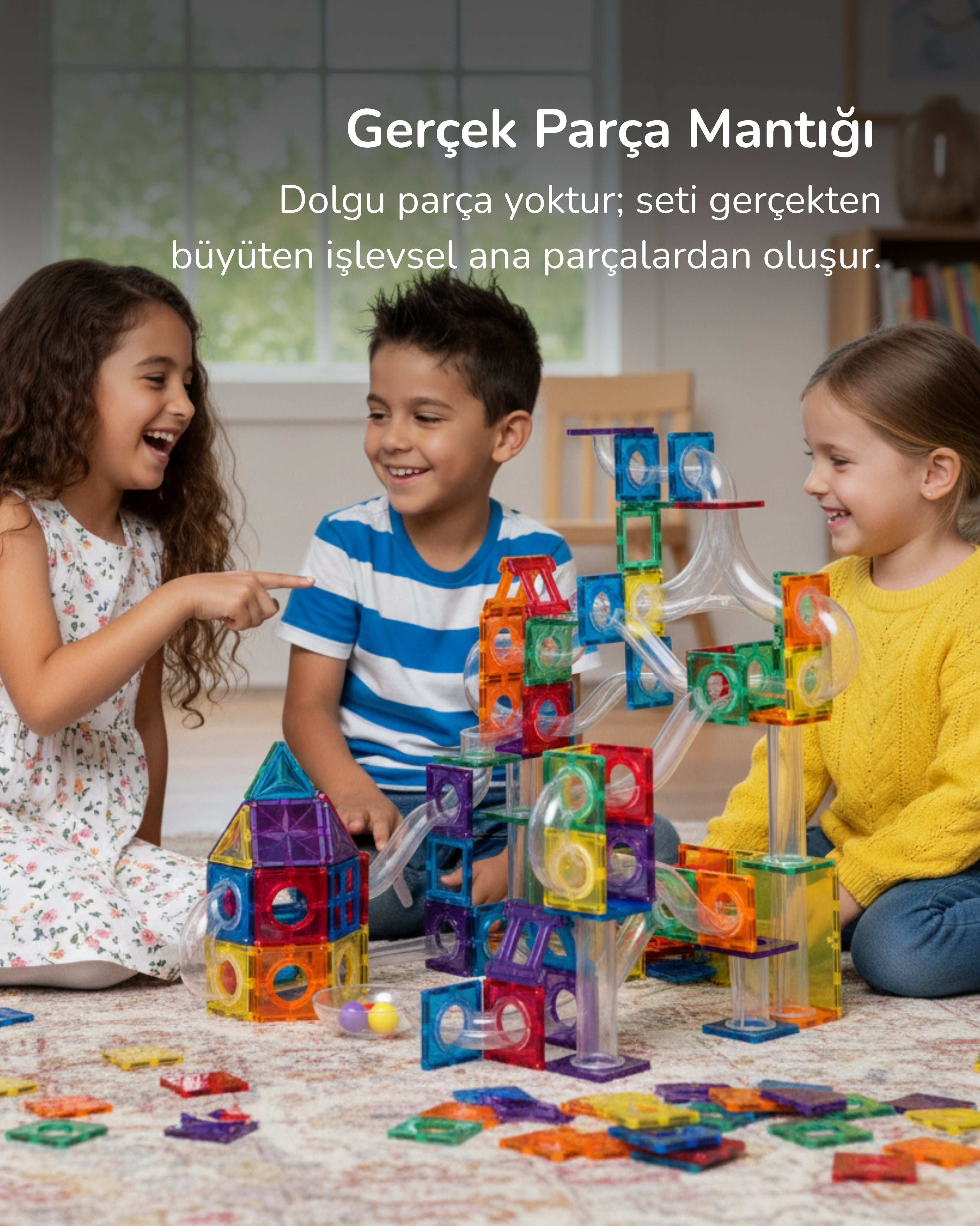 Manyetik yapı dünyasına giriş yapmak isteyenler ve daha az parçalı bir set tercih edenler için ideal bir başlangıçtır. Manuel araba ile birlikte sadece yapı kurmayı değil, kurulan yapıyı harekete dönüştürmeyi de mümkün kılar.